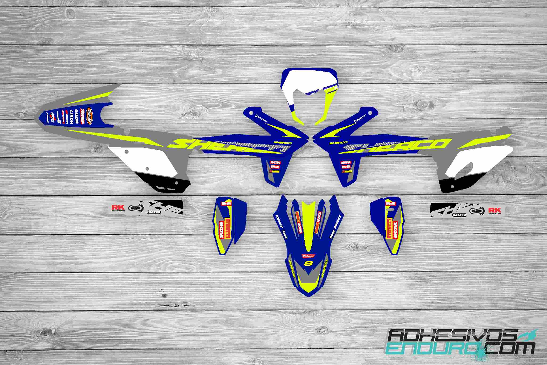 - Acabado 380 Micras, Vinilo de impresión de primera calidad recubierto de laminado de 380 Micras. Ideal para usos exhaustivos en MX o Enduro así como en vehículos de competición en cualquier modalidad.